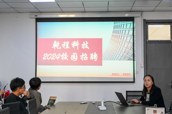 会议伊始,乾程集团秦玉女士介绍集团背景及此次座谈会目的,从“智慧用电”和“双碳新能源”两大核心业务出发,依次介绍储能中心、研发中心、智能制造中心等多个集团中心领域,并对于企业的晋升机制和秋季招聘岗位需求进行详细讲解。依秦玉在座谈会中所讲,乾程集团着眼于综合能源解决方案,占据大规模国内市场,鼓励大学生积极投入研发事业。会议期间,学生们踊跃提问,针对一名电气工程及其自动化专业学生的就业方向问题,秦玉从强电、弱电两个方面分别进行解答与建议。学生仍对薪资待遇、发展方向、就业岗位的对接领域等方面向秦玉提出问题,并得到她的耐心讲解。古镇口校区优秀学生杨海彤表示:“通过此次座谈会,我对乾程集团有更深入的了解,对未来的就业前景及发展方向也有更明确的认知,此次座谈会让我受益匪浅。”