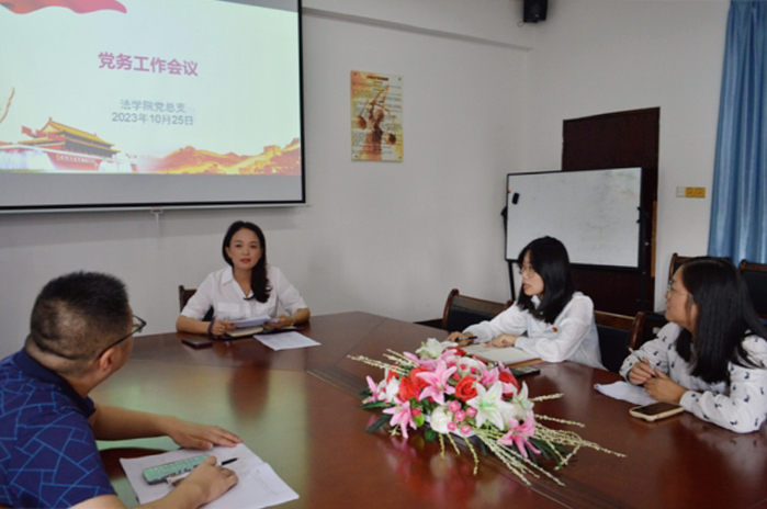 为强化党务引领作用,进一步推动学院学生党建工作的高质量发展,助推学院事业发展,10月25日,beat365官方网站党总支于法律诊所召开了党务工作会议。beat365官方网站党总支书记兼副院长杨勤,beat365官方网站党总支副书记林媛,beat365官方网站教工党支部书记黄文伟,beat365官方网站学生党支部书记吴姗姗,beat365官方网站教工支部组织委员黄晓娟共同参与此次会议。