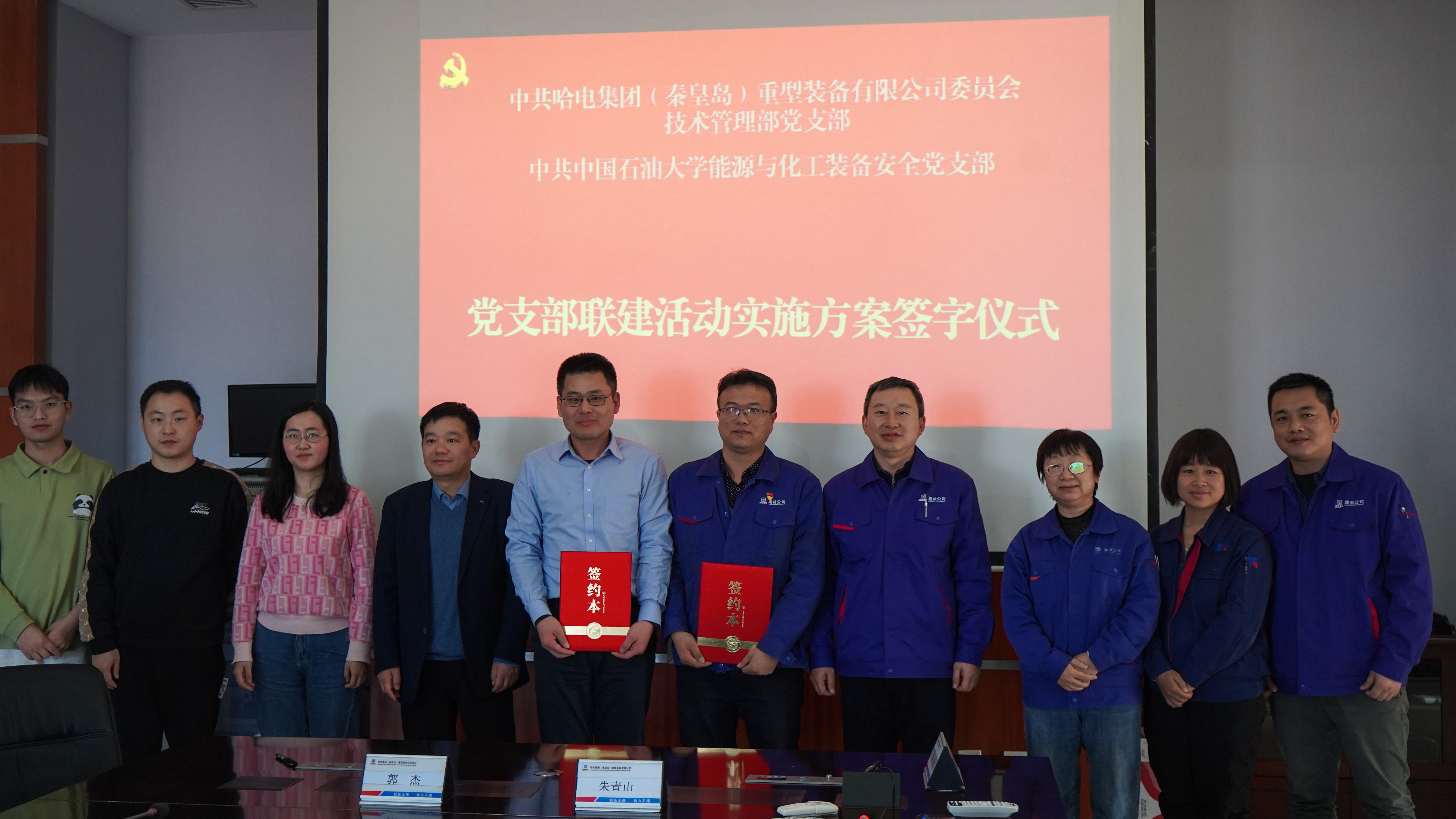 哈电集团(秦皇岛)重型装备有限公司总经理刘立民、副总经理赛鹏、焊接总专业师林海燕、技术管理部党支部书记朱青山与中国石油大学(华东)校党委常委、实验室管理处处长蒋文春、新必赢242net官网党委副书记郭杰以及双方党支部部分党员共同参加了此次联建活动。