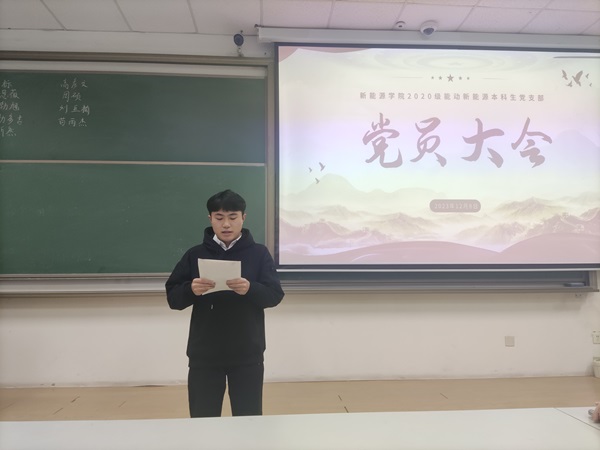12月8日,必赢官网2020级能动与新能源本科生党支部于南教楼119教室召开党员大会。会议由党支部书记孔令剑同志主持,支部成员参加,大会根据《中国共产党章程》和《中国共产党发展党员工作细则》要求,主要研究讨论了朱标、陈勃旭等九名预备党员的转正问题。