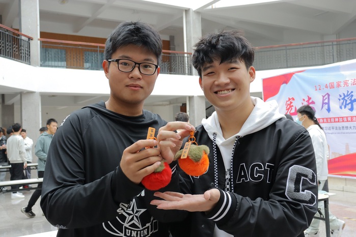 本次游园活动共设置了领卡处、宪法知识答题、宪法法条朗读、宪法知识宣讲、留言墙、宪法打卡宣传、兑奖处七个活动点。每个活动点都挤满了围观的同学,现场气氛十分热烈。老师们和同学们一起参与各项宪法小游戏,收集印章,兑换奖品。看飞运乒乓球那矫健的步伐、打卡处一张张精美的照片、留言墙上满满的心得体会。一笔一划、一言一行都展现了仰恩师生的风采。广大师生乐在其中、热情洋溢,给冬日的校园增添了一丝暖意。