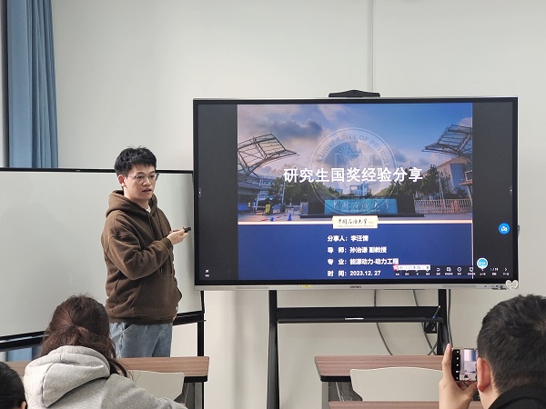为弘扬孜孜不倦的求学精神,充分发挥优秀研究生的榜样力量,12月30日,新必赢242net官网研究生会在新能源大厦269举办优秀成果汇报会暨国奖获得者经验分享会。此次汇报会由新必赢242net官网研究生学生会学术实践部韩璐主持,2021级电气工程学术硕士研究生孙浩,动力工程及工程热物理研究生何若松、柳毅博,动力工程研究生李汪情受邀成为此次论坛的汇报嘉宾。
