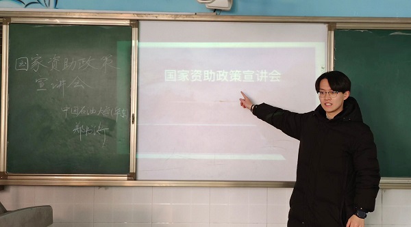 在此次活动中,郑书衡详细介绍了国家和学校的各种资助政策,重点强调了大学中的奖学金、补助和助学贷款相关政策,并举例说明了政策的好处,分享了自己大学期间的学习经历以及获得国家奖学金的的经验,极大地鼓舞了与会学生的信心和热情。现场氛围活跃,学生们积极参与并提出了许多问题,郑书衡对他们的疑问进行了耐心的解答,并提供了相关政策文件和网站链接,给他们提供了有价值的相关信息。活动最后,郑书衡还向参会学生介绍了中国石油大学(华东)的概况并欢迎他们报考,成为石大的一份子。