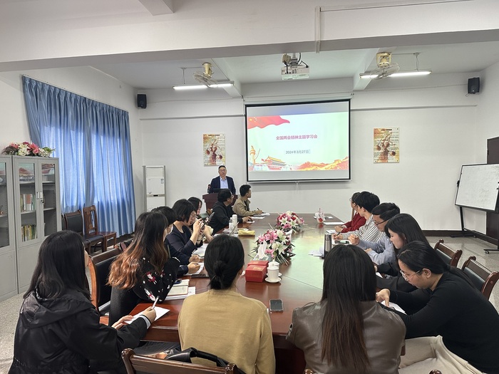 3月27日下午,beat365官方网站组织全院教职工开展理论学习,集中专题学习全国“两会”精神,大家围绕“两会”精神进行学习和交流,beat365官方网站全体教师参加学习。