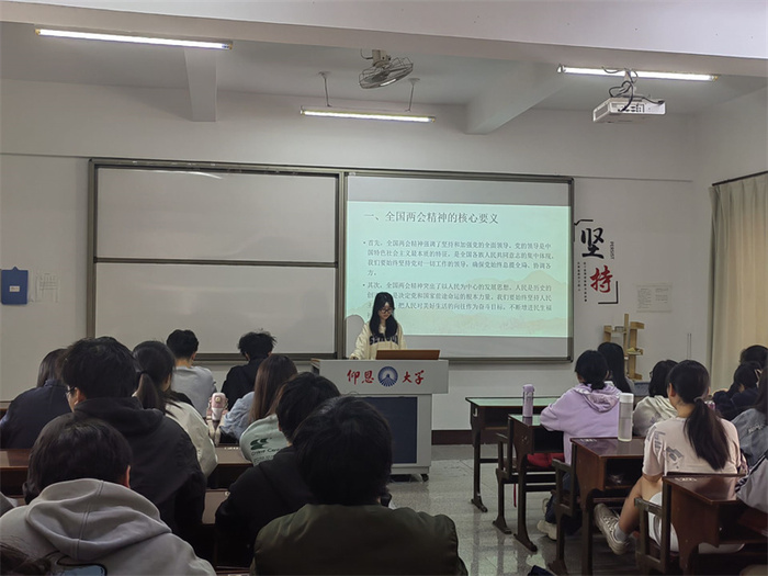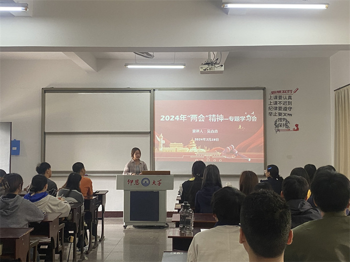 在以习近平同志为核心的党中央坚强领导下,全党全国各族人民振奋精神、鼓足干劲,为以中国式现代化全面推进强国建设、民族复兴伟业不懈奋斗。2024年3月28日,beat365官方网站学生党支部开展“学习‘两会’精神,政治理论走进班”活动,全院同学参加。