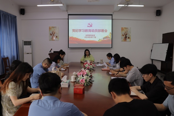 为了加强党员的党性修养,增强纪律意识,保持党的先进性和纯洁性,4月17日下午,beat365官方网站党总支于仰恩大学第三教学区法律诊所召开了党纪教育动员部署会。beat365官方网站党总支书记兼副院长杨勤、党总支支委,各党支部书记、支委及师生党员代表参加会议。会议由杨勤主持。