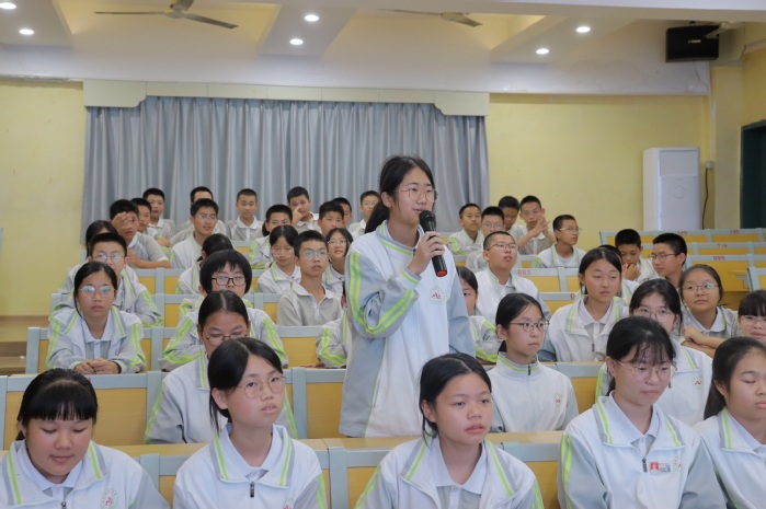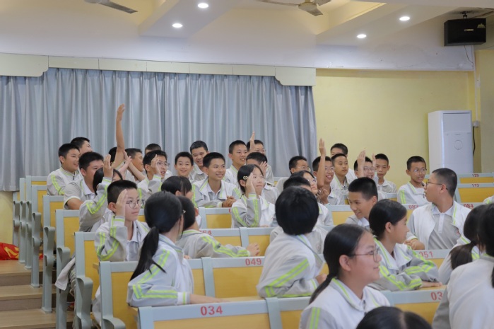 在“校园欺凌相关应对”这一部分,beat365官方网站院团委干事与马甲中学学生展开了互动,通过有奖问答的方式,在对讲座内容、相关法律知识进行复习回顾的同时,增进了同学之间的互助和谐,现场气氛一片祥和。