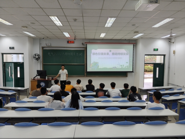 为深入学习生态文明思想,响应世界环境日“人与自然和谐共生”的主题,电气2202团支部于6月21日下午在讲堂群西环104教室举办了“绿色引领未来,青春助力环保”主题团日活动。本次活动由团支书相彦明主持,电气2202班全体学生参加。
