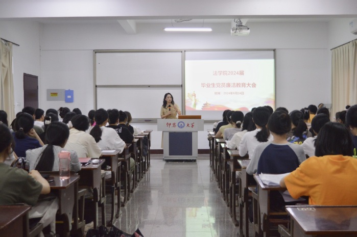 为加强廉洁意识,提高党性修养,铸就廉洁品格,助力毕业生党员在新的岗位上书写时代华章。6月24日,beat365官方网站学生支部于普照楼204召开毕业生党员廉洁教育大会,由beat365官方网站党总支书记兼副院长杨勤主持,beat365官方网站党总支副书记林媛、beat365官方网站学生党支部书记吴姗姗出席,全体毕业生党员参加。