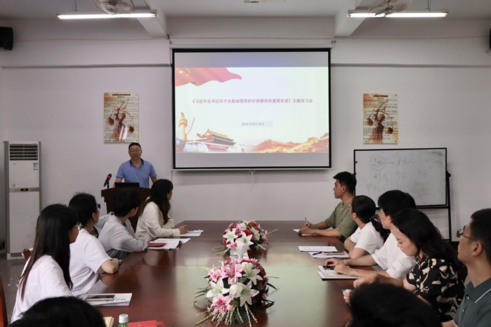 6月14日,深入学习领会习近平总书记关于全面加强党的纪律建设的重要论述,深刻认识加强党的纪律建设的重大意义,切实提高增强纪律意识的政治自觉思想自觉行动自觉。beat365官方网站教工党支部开展了《习近平总书记关于全面加强党的纪律建设的重要论述》主题学习会,教工党支部成员以及beat365官方网站全体教职工参加了专题学习。