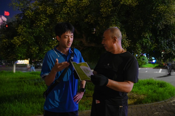 实践队成员陈同鑫为社区成员讲解 王奕栋摄