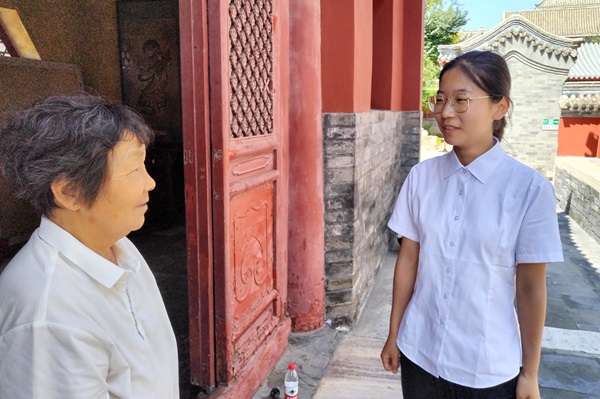 作为保定著名的佛教寺庙,大慈阁以其悠久的历史和深厚的宗教文化底蕴,为实践队员们提供了一次心灵的净化之旅。实践队通过拍摄大慈阁的建筑美学和宗教仪式,制作一系列短视频和图文内容,不仅让更多人了解到大慈阁的文化价值,也为现代人提供了一种心灵的慰藉和放松的休闲方式。“希望通过你们的镜头和文字,让更多人了解大慈阁,参与到文化遗产的保护和传承中来。”队长张晶采访游客说道。