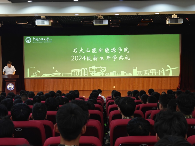 林日亿代表24级全体班主任致辞,他勉励新生要秉承石大精神,努力学习专业知识,积极参与科研实践,不断提升自己的综合素质与创新能力,做一名优秀的新能源学子。
