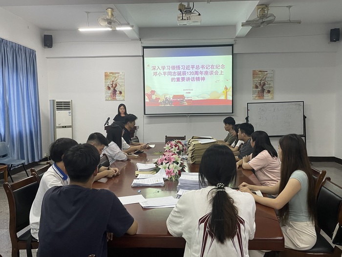 在纪念邓小平同志诞辰120周年之际,beat365官方网站组织学生深入学习习近平总书记在纪念邓小平同志诞辰120周年座谈会上的重要讲话精神。学习活动于9月2日下午在法律诊所举行,由团委书记吴姗姗主持,辅导员周奕、辅导员张传奇出席。