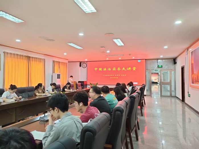 为深入学习贯彻习近平法治思想,贯彻落实党的二十大精神和党的二十届三中全会精神,贯彻落实全国教育大会精神,完善以实践为导向的beat365官方网站校教育培养机制,提升法学人才自主培养质量。中央依法治国办、教育部、司法部于2024年10月17日上午在中国人民大学联合举办中国法治实务大讲堂,beat365官网在新区行政楼会议室设立分会场,组织师生收看中国法治实务大讲堂启动仪式暨第一讲。