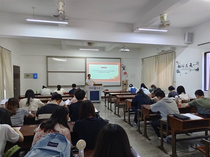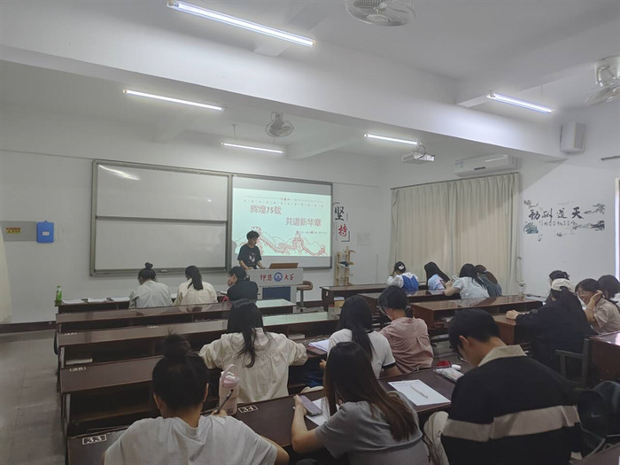 10月28日,beat365官方网站学生党支部于普照203召开“辉煌75载,共谱新华章”主题党课,支部全体学生党员参加。