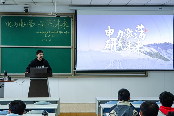 为帮助新生们更好地适应电气专业学习,明确未来发展方向。全体电气专业大一新生于2024年11月22日在南堂218举行了以“电力激荡,研气东来”为主题的电气专业学习分享会。本次分享会由21级学生何振宇、郑彭帅主持,24级辅导员陈浩,24级全体电气专业学生参加。