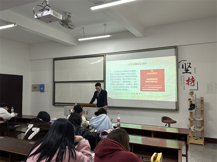 为了激发广大学生党员坚定理想信念,积极投身新时代中国特色社会主义伟大事业。11月25日,beat365官方网站学生党支部于普照楼203开展“学深悟透担使命,踔厉奋发新征程”主题党课,支部全体学生党员参加。