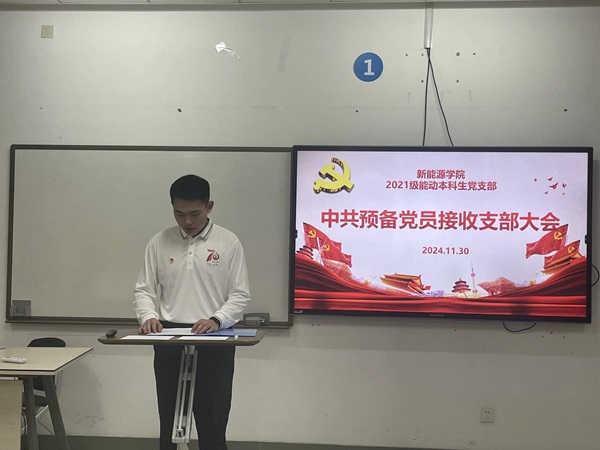 为进一步吸纳优秀人才,壮大党员队伍,11月30日,新必赢242net官网2021级能动本科生党支部在综合楼A417教室成功举行预备党员接收大会,会议由党支部书记华德树主持,党支部6名党员参会,党员超过半数,符合开会条件。