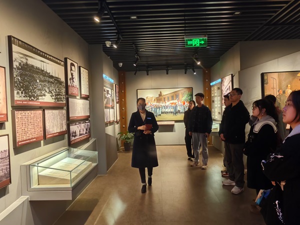 在观看党史相关视频,对近代中国共产党在青岛的发展历史进行了解后,两支部成员在讲解员带领下参观了纪念馆的四个展区,共同学习青岛地区的党团创建、国共合作、工人运动和党组织在大革命时期的坚持与发展。展区的每一部分都生动再现了青岛革命先驱们的奋斗历程,生动的历史资料和实物展示了青岛共产党人如何在艰难环境中团结工人、推动革命,始终保持信仰和斗志,不断壮大革命力量。活动最后,全体党员举起右手,庄严宣誓,重温入党誓词,进一步增强了党员的责任感和使命感。装控研究生第三党支部成员贺子昂在参观后表示:“通过参观党史纪念馆,我对革命先烈们为信仰而奋斗的坚定决心深感敬佩,也更加明确了作为一名党员的责任。在今后的工作中,我将更加努力,以实际行动贯彻落实党的宗旨。”
