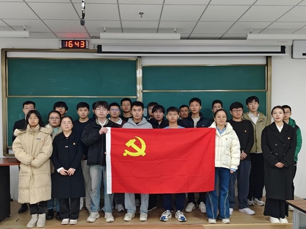 仪式开始,全体党员观看学习《党章电视辅导教材:共产党员》,结合先进人物的故事,阐释党员标准、党员权利和义务。随后,由研究生党员代表丁元贺领誓,新入党的同志面向党旗庄严宣誓。在铮铮誓言中,表达了他们加入中国共产党的坚定决心和为共产主义理想奋斗终身的永恒追求,并许下了他们对党忠诚、全心全意为人民服务的郑重承诺。接着,预备党员代表雷盼盼进行发言,她表示:“成为一名共产党员是一种荣誉,更是一种责任,我将以一生的行动来践行初心和使命。在未来的岁月里,无论遇到什么样的困难和挑战,我都将坚定信念,勇往直前,为实现中华民族的伟大复兴而不懈奋斗。”仪式尾声,党支部书记为在场预备党员发放并佩戴党徽,希望所有预备党员能发挥党员的先锋带头作用,引领广大青年学生坚定理想信念,积极向党组织靠拢。