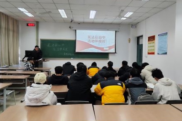 为增强同学们宪法意识,弘扬宪法精神,12月22日,装控2304班在南堂113成功召开以“宪法在心中,法治伴成长”为主题团日活动,本次活动由团支书盖仕元主持,装控2304班全体成员参加。