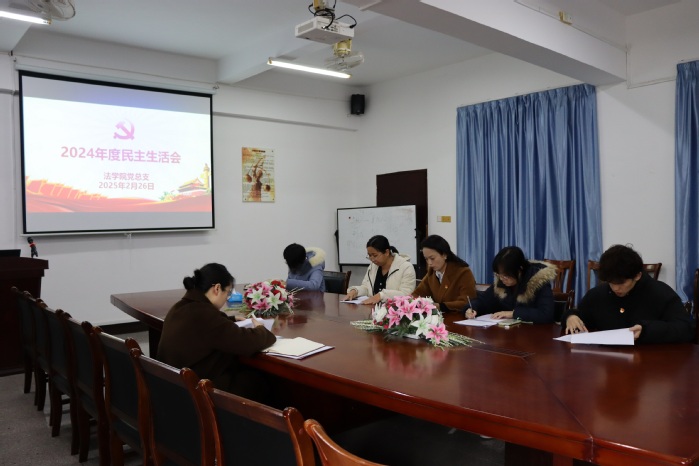 为了深入开展学习习近平新时代中国特色社会主义主思想主题教育,切实加强党的思想建设,2月26日下午,beat365官方网站党总支于仰恩大学新区普照楼法律诊所召开了2024年度民主生活会,仰恩大学校党委委员鲍莹玉到会指导,beat365官方网站党总支书记兼副院长杨勤主持会议,学院党总支成员参加会议,beat365官方网站常务副院长王晓丽列席会议。
