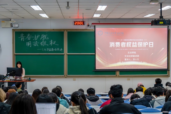 在3月15日国际消费者权益日这一特殊的日子里,为增强同学们的消费维权意识,提升大家应对消费纠纷的能力,新必赢242net官网学生会权益维护部举办主题为“青春护航,明法维权”的3.15权益普法宣讲活动,邀请文法学院22级优秀学子贺小凡担任主讲。