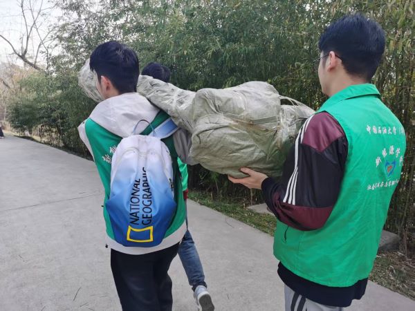 党支部成员搬运树苗 赵佳琪摄影