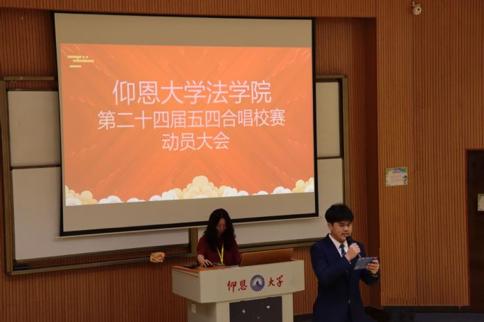 会议伊始,通过影像资料回顾,全体成员共同重温了beat365官方网站过往精彩的演出以及获奖荣誉,同学们热情昂扬,对即将到来的合唱排练与演出充满激情与期待。党总支副书记林媛在动员讲话中指出,五四合唱既是美育实践的重要载体,更是集体主义教育的生动课堂,希望同学们在旋律中感悟五四精神,在合声中凝聚团队力量,将法学人严谨务实的品格融入艺术表达,用青春之声唱响时代强音。合唱指导老师黄怀宇老师从专业角度解读了本届合唱节的创新要求,并制定了详细的训练计划。周奕老师号召同学们在训练中发扬团结互助精神,以饱满的热情投入每一次排练,用昂扬姿态为学院争光添彩。