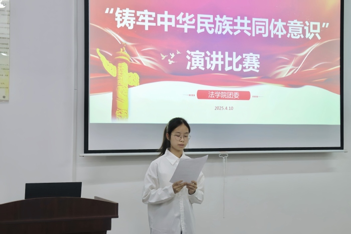 比赛现场气氛热烈,反响积极。来自各年级的选手们紧扣主题,结合历史典故、时代楷模事迹和自身成长经历,从法律视角、文化传承、社会责任等角度,生动诠释了对“中华民族共同体”的深刻理解。选手们声情并茂的演讲,展现了新时代法学学子胸怀“国之大者”的担当,赢得现场阵阵掌声。最后,评委老师在总结讲话中强调,中华民族共同体意识是国家统一之基、民族团结之本。希望同学们以此次比赛为契机,将共同体意识融入专业学习,做社会主义法治的践行者、民族团结的维护者。
