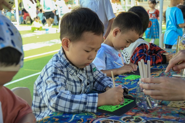 5月30日,装控2404团支部的志愿者们以“童梦艺彩,共筑未来”为主题举办艺术节专项活动。志愿者团队精心设计十二个创意工坊:在“飞舞的线”摊位上,孩子们用毛线与丙烯颜料创作抽象线条画;在“糖果乌托邦”区域,彩色泡沫球在稚嫩小手中变身梦幻装饰;传统扎染技艺与现代漆扇工艺的结合,则让非遗文化以趣味形式浸润童心;在“多人气球彩绘”活动中,“大朋友”与“小朋友”携手,共同在色彩斑斓的气球上挥洒想象,绘制出一幅幅充满童趣与梦想的作品。