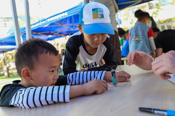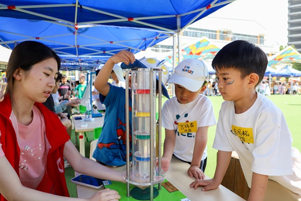 5月29日,电气2021级本科生党支部与本研动力2401团支部将精心策划的一系列贴近儿童认知的科技小实验呈现给小朋友们,将深奥的科学原理转化为直观的互动体验。在“漂浮的针”实验中,孩子们目睹了水的表面张力如何托起细针,又因一滴清洁剂的加入而巧妙改变现象;在“瓶子赛跑”环节,他们通过对比装有沙子与水的瓶子滚动速度,直观理解了摩擦力与重力的作用差异;更有“隔空传水”利用连通器原理让水流在空中交汇,“斯特林发电机”将热能转化为动能驱动风车旋转……每一个实验都引发孩子们的阵阵欢呼,他们在动手操作中理解了科学原理,更在心中种下了探索的种子。