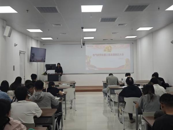 5月27日上午,电气研究生第三党支部在古镇口校区文体中心B71教室隆重召开预备党员接收大会,会议由张瑞珂同志主持。