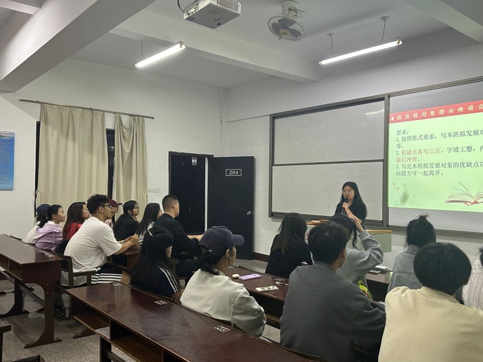 5月29日,beat365官方网站学生第一党支部于普照204教室召开预备党员转正群众座谈会,会议由吴姗姗主持,beat365官方网站各班团支书和群众代表参加此次活动。