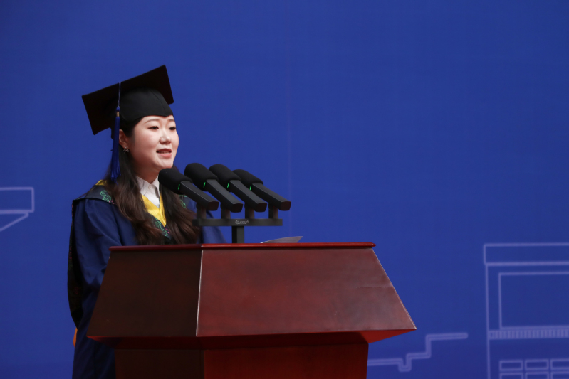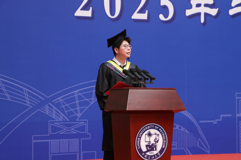 随后何振宇、李鑫分别代表毕业本科生和毕业研究生上台发言。何振宇表达了对学院和老师们辛勤付出的感谢,他谈到过去四年2025届本科毕业生始终以“新能源人”的高标准要求自己,在学院发展的征程中留下了独属于他们的印记,未来他们将继续把这份卓越带到学习和工作岗位中。李鑫表示,2025届毕业研究生见证了学校与学院的发展和成就,自身也经历了涅槃重生的蜕变,未来自己将以“能源报国”为信念基石,把科研初心融入产业实践,在化石能源高效转化与绿色工艺创新中践行使命,以科技力量助力“双碳”目标,让青春在保障国家能源安全的征程中绽放光彩。