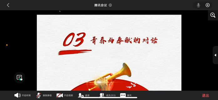 会议里,同学们线上共读《习近平强军思想学习问答》节选,观看红色纪录短片,再现抗震救灾、国际维和中的军人身影,邀请退役大学生士兵分享维和故事,并以“法治青年如何向军人学习”为题分组研讨。同学们在弹幕中留言“清澈的爱,只为中国”,将会议气氛推向高潮。