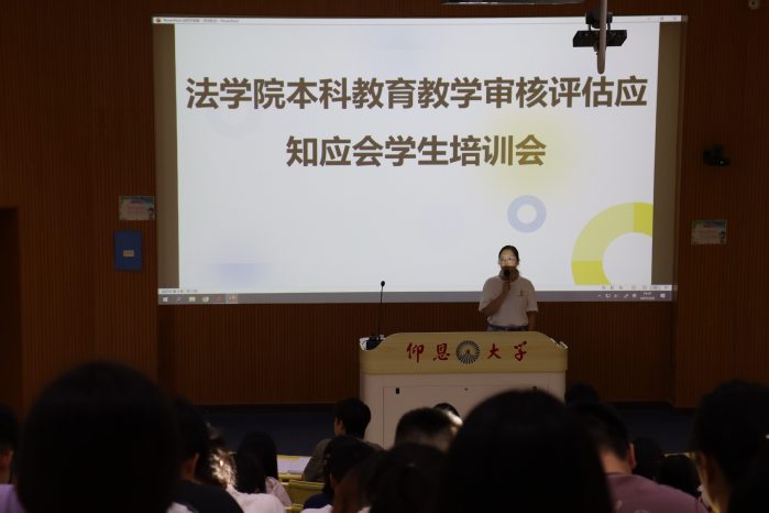 为深入贯彻落实学校本科教育教学审核评估工作要求,引导学生全面了解评估意义,积极主动参与评估工作,9月12日,仰恩大学beat365官方网站于和昌楼组织召开本科教育教学审核评估学生应知应会培训会,同时本周各班班会也同步开展。法学院党总支书记兼副院长杨勤、党总支副书记林媛及全体辅导员出席会议,本次会议由党总支副书记林媛主持,beat365官方网站全体学生共同参会。
