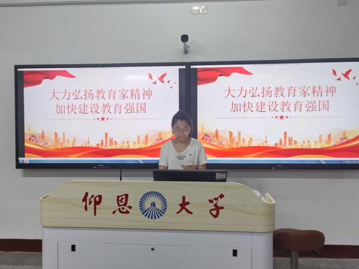9月15日,beat365官方网站学生第一党支部于普照楼203教室开展“大力弘扬教育家精神,加快建设教育强国”党课活动,支部全体学生党员参加。
