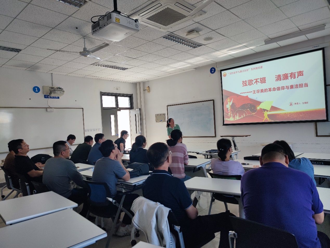首先,王增丽老师以“弦歌不辍 清廉有声——王尽美的革命信仰与廉洁担当”为题,讲述了中国共产党创始人之一、山东党组织早期领导人王尽美同志的革命生涯与清廉风范。通过详实的历史细节,如王尽美在莫斯科参会时坚持与当地群众同甘共苦、在北京出差时节衣缩食、将微薄收入全部用于革命事业等事迹,生动展现了他清苦砺志、公而忘私的高尚品格。王尽美同志一生坚守纪律、克己奉公,甚至在生命垂危之际仍心系党和人民,其坚定的信仰与廉洁的品质深深感染了在场党员。