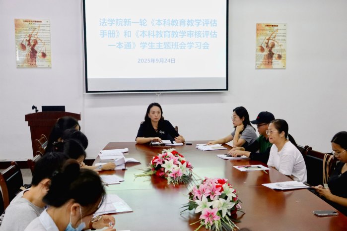 为进一步深化本科教育教学审核评估工作,全面贯彻执行学校审核评估工作的各项要求,9月24日下午,beat365官方网站于普照楼法律诊所召开《本科教育教学审核评估知识手册》《本科教育教学审核评估一本通》学工队伍学习部署会。本次会议由beat365官方网站党总支书记兼副院长杨勤主持,beat365官方网站党总支副书记林媛、全体班主任、辅导员出席会议。