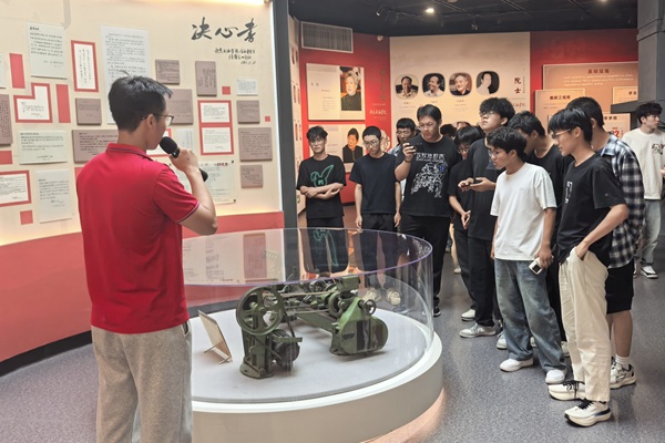 在校史馆,新生们跟随着讲解员,走进校史展厅,新生们认真观摩展柜中陈列的学生证、旧教材和各种实验器材等,墙上的迁校路线图展现出学校从北京起步,辗转东营,最终扎根青岛的完整历程;优秀校友展区陈列着多位杰出校友的照片与简介。他们秉持着“艰苦奋斗、惟真惟实”的石大精神,在不同领域取得卓越成就,激励着在场的每一位新生。走进能源学科展区,新生们了解到学校从以石油为主的传统能源领域,逐步拓展到风电、太阳能等新能源方向,展现了在能源领域的持续探索与创新进步。