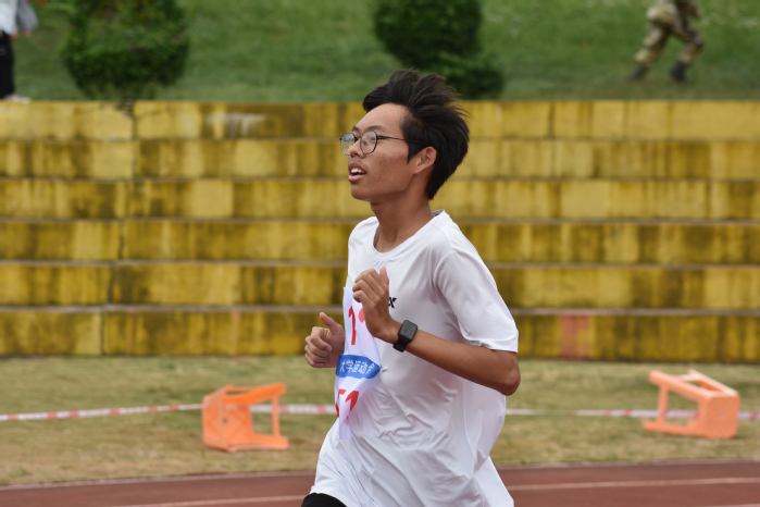 作为田径赛场上对耐力与意志力要求极高的项目,10000米长跑挑战着每一位选手的生理与心理极限。赛前,吴赵沅进行了充分的热身与心态调整。比赛过程中,他沉着应战,始终保持着稳定的呼吸与节奏,在漫长的赛道上一步步积累优势。每当体能接近极限,他都凭借坚定的信念咬牙坚持,不断实现自我突破。看台上同学们的呐喊助威也化为他前进的动力,激励着他全力冲向终点。最终,吴赵沅以第七名的优异成绩圆满完赛。