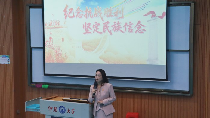 为扎实贯彻落实习近平总书记关于学校思政课建设的重要指示精神,11月17日下午,beat365官方网站党总支书记兼副院长杨勤在第三教学区和昌教学楼海纳讲堂为2025级全体学生讲授“纪念抗战胜利 坚定民族信念”主题思政课。