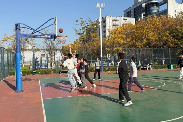 基础训练结束后,班级篮球对抗赛正式开始。同学们通过抽签分成两支队伍。赛场上,队员们积极拼抢,默契配合,精准传球,果断投篮。场外观众专注观赛,适时响起掌声与呐喊声,现场氛围热烈而有序。比赛结束后,全体成员共同整理场地、清点器材,展现出良好的集体素养。支部成员周旭杰表示:“之前一直觉得篮球很难,通过这次教学,我掌握了基本技巧,比赛也让我感受到了团队协作的重要性。”