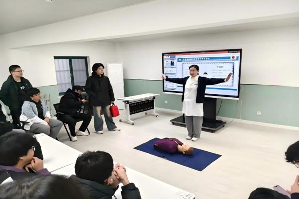 活动伊始,医护人员聚焦心肺复苏、人工呼吸与海姆立克急救法三大核心技能展开详细讲解。针对心肺复苏,明确了环境判断、意识确认、胸外按压(深度5-6厘米、频率100-120次/分钟)与人工呼吸的规范流程及动作要点;海姆立克急救法则区分成人、儿童、婴儿不同群体,演示了腹部冲击、指压等差异化操作方式,确保实用性与针对性。随后,医护人员系统介绍AED(自动体外除颤器)的外观构造、开机步骤、电极片粘贴位置,强调“听从语音提示”“分析心律时不接触患者”等关键注意事项,并通过假人完成完整操作演示。实操环节中,同学们依次进行急救技能演练,医护人员全程旁站指导,及时纠正动作偏差;AED使用则以分组练习形式推进,同学们从开机、贴电极片到按提示操作,逐步熟悉全流程,切实将理论知识转化为实操能力。
