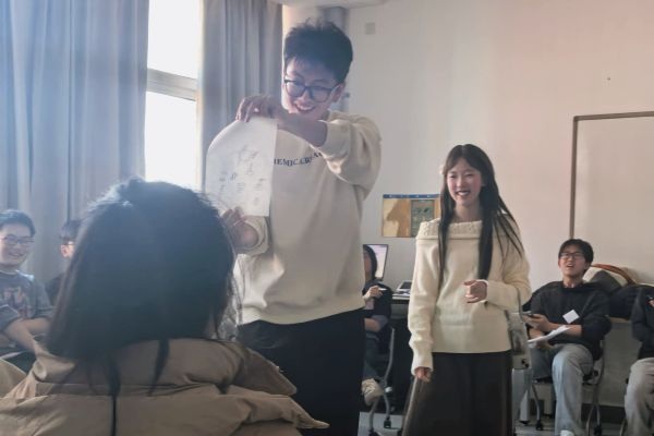 活动以经典的“过七”游戏拉开帷幕,主持人梁酩钰与罗忠鑫清晰讲解游戏规则后,同学们迅速融入其中,从最初的小心翼翼到后来的大胆应答,到失误时的爽朗笑声、闯关成功的欢呼喝彩,让教室的氛围瞬间活跃起来,也彻底打破了同学们之间的陌生感。游戏结束后,特征表单互动环节随即开启,表单上涵盖了兴趣爱好、特长技能、性格特点等多个维度的线索,同学们对照表单逐一交流分享,在寻找匹配特征的过程中,不仅重新认识了身边熟悉又陌生的同学,更发现了彼此不为人知的闪光点。随后的随机分组环节将活动推向高潮,同学们按照便签上提前画好的三角形、圆形、正方形等不同符号完成分组,6个小组迅速组建完毕后,趣味十足的团队游戏正式开始。自画像创作环节里,同学们用画笔勾勒出自己心中的“自画像”,并向小组伙伴分享画作背后的故事;抢队员环节中,各小队成员齐声喊出目标队员的编号与姓名,拼手速、拼默契争抢队友,每一次成功“抢人”都引来阵阵欢呼,现场气氛火热到顶点。活动尾声,碳中和未来2501班的专属班旗正式亮相,同学们围绕班旗合影留念,鲜艳的班旗也成为本次活动中凝聚集体力量的重要象征。