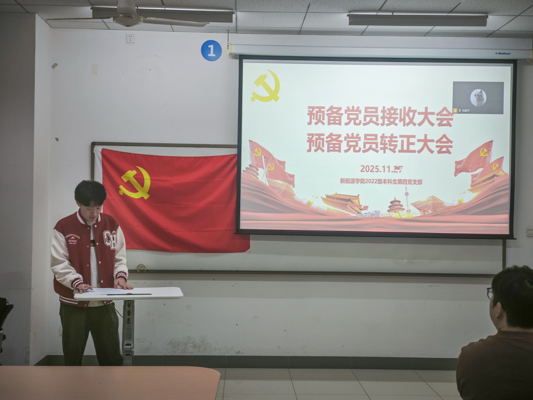 11月30日,新必赢242net官网2022级本科生第四党支部在综合楼A523教室召开接收预备党员支部大会。会议由党支部书记邹晨宇同志主持,支部全体党员、预备党员参加。