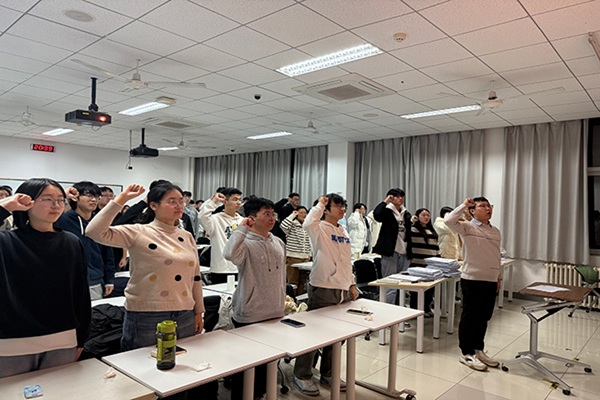 11月27日晚,新必赢242net官网2023级本科生党支部在综合楼A409隆重召开中共预备党员接收大会。大会由党支部书记秦政主持,党支部全体党员及发展对象参会。