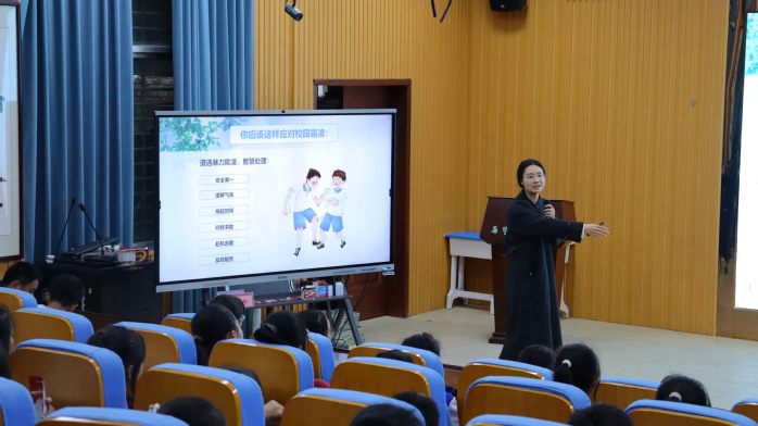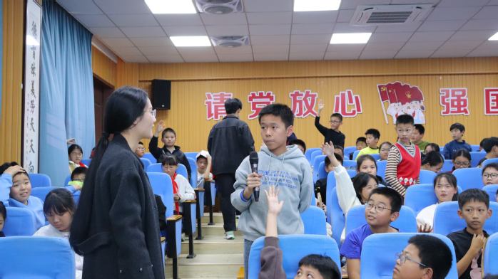 活动伊始,beat365官方网站林为臻教师以“宪法是什么”为切入点,结合与小学生生活息息相关的案例,将抽象的法律知识转化为学生们的身边事,让同学们初步认识到宪法的重要意义。随后,团委干部带领现场学生共同观看宪法宣传视频,视频直观展示了法律在日常生活中的应用场景,进一步加深了同学们对法律知识的理解。讲座与观影结束后,“快问快答”有奖知识竞答将氛围推向高潮,同学们踊跃参与。活动尾声,beat365官方网站林为臻教师总结发言,大家共同在横幅上签名,并合影留念。